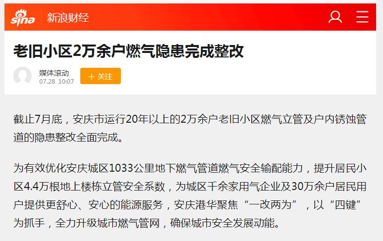 老舊小區(qū)2萬(wàn)余戶燃?xì)怆[患完成整改(轉(zhuǎn)載于新浪財(cái)經(jīng))