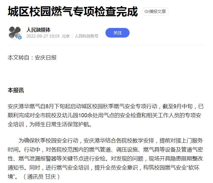 城區(qū)校園燃?xì)鈱m?xiàng)檢查完成(轉(zhuǎn)載于人民網(wǎng)融媒體)