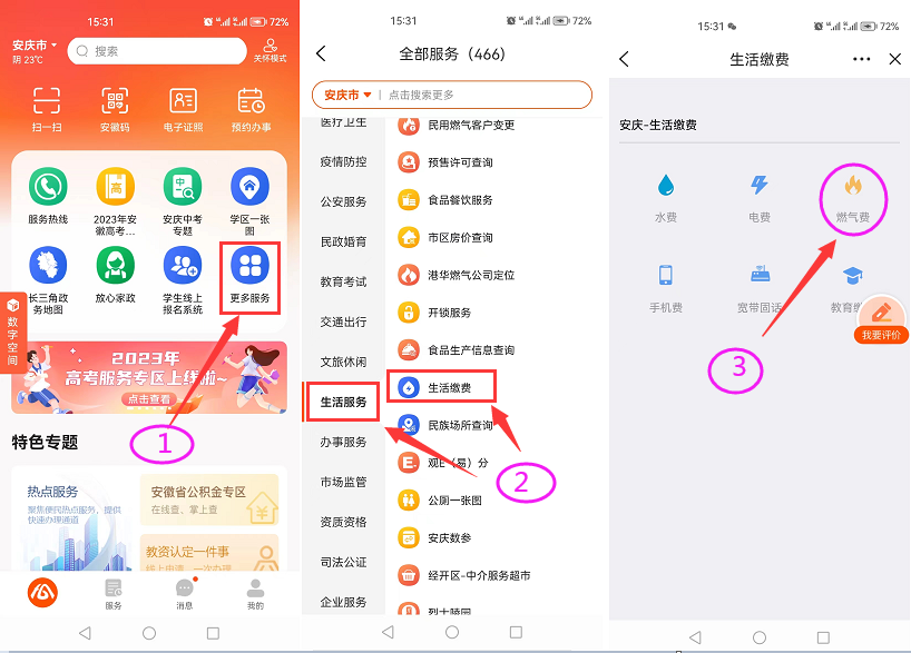 皖事通:安裝并打開皖事通APP,進入“更多服務”-選擇“生活服務”-“生活繳費”,點擊“燃氣費繳納”即可繳納燃氣費或者預存氣費。