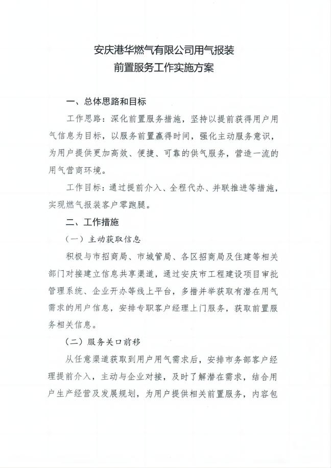 安慶港華燃?xì)庥邢薰居脷鈭?bào)裝 前置服務(wù)工作實(shí)施方案