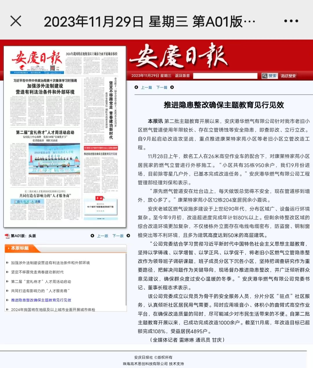 推進(jìn)隱患整改確保主題教育見行見效(轉(zhuǎn)載于安慶日報)