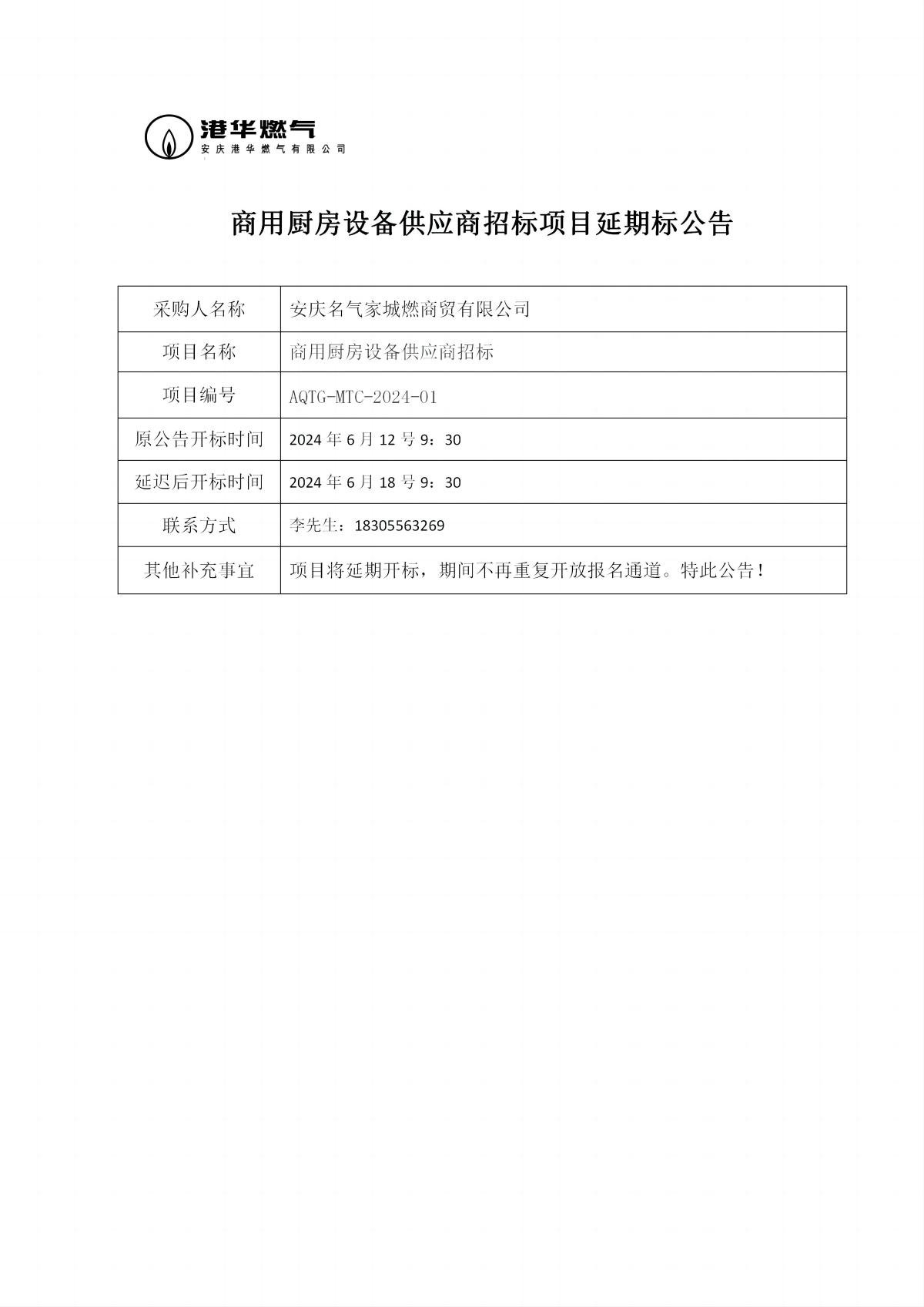 商用廚房設(shè)備供應(yīng)商招標(biāo)項(xiàng)目延期標(biāo)公告