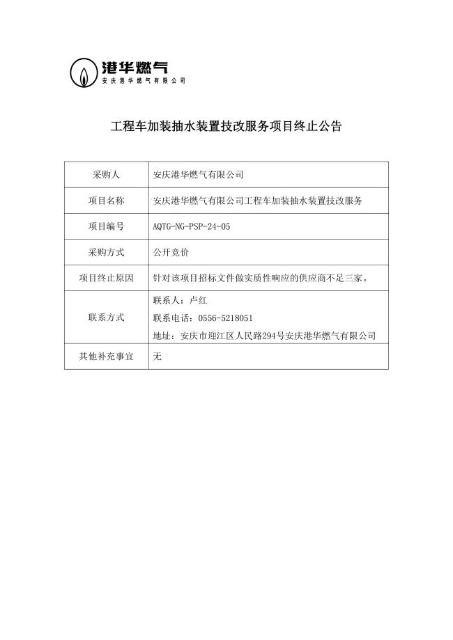 工程車加裝抽水裝置技改服務項目終止公告