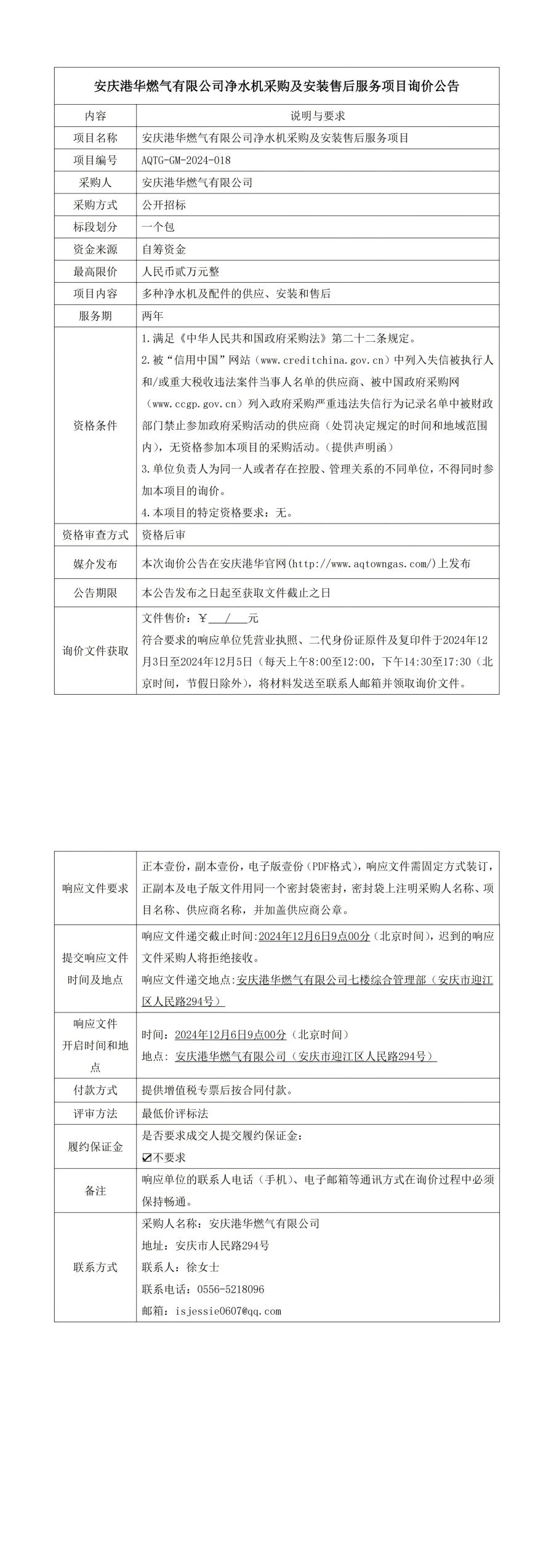 安慶港華燃?xì)庥邢薰緝羲畽C(jī)采購及安裝售后服務(wù)項目詢價公告
