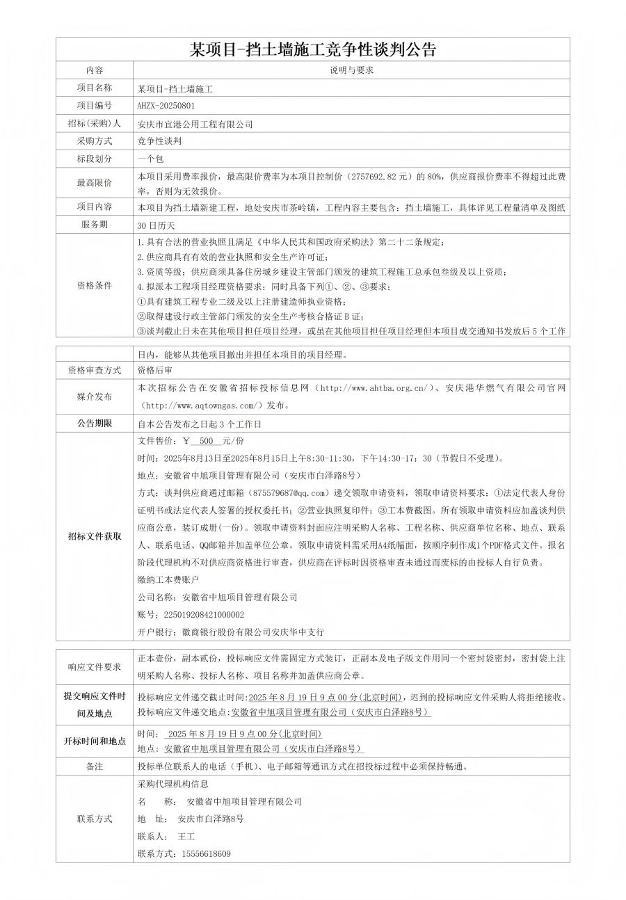 某項(xiàng)目-擋土墻施工競(jìng)爭性談判公告