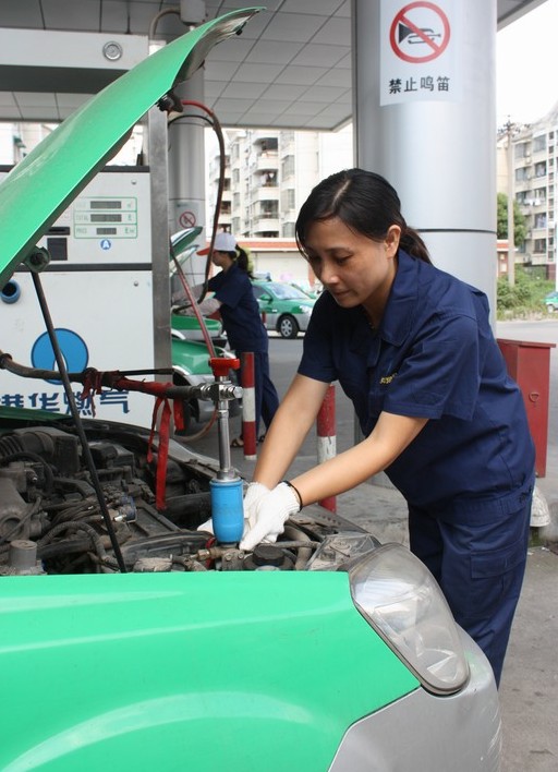 一是每天定時、定人對站區(qū)的運行設(shè)備進行巡檢、維護,做到提前排除故障,保障設(shè)備運行正常;二是充實港華路加氣崗位操作工人,確保一機一人,有效提高加氣效率;三是定期通過短信平臺向出租車駕駛員發(fā)送加氣高峰時段提示短信,每天通過站區(qū)電子顯示屏發(fā)送溫馨提示,提醒客戶錯峰、避峰,分流加氣;四是每天安排專人在現(xiàn)場對加氣車輛進行疏導,力爭做到排隊短,等候時間少,保證了加氣秩序有條不紊。由于措施到位,有效避免了夏季高峰段加氣排長隊現(xiàn)象。